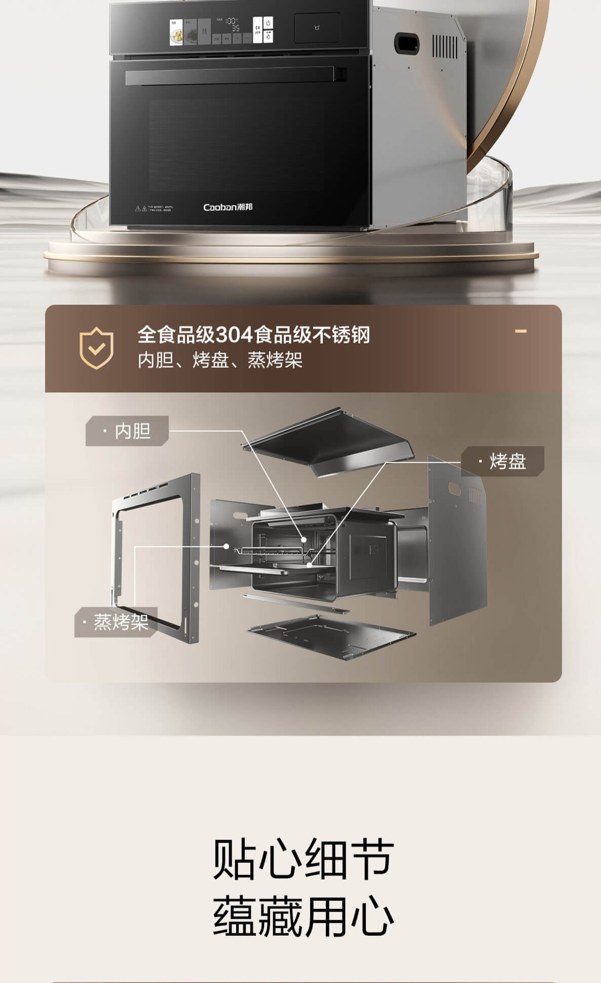 靈犀炫彩大屏,48L大容量,十二大專業(yè)蒸烤模式,上下雙管烤,直噴瀑布蒸汽,全304食品級(jí)不銹鋼,一鍵高溫殺菌