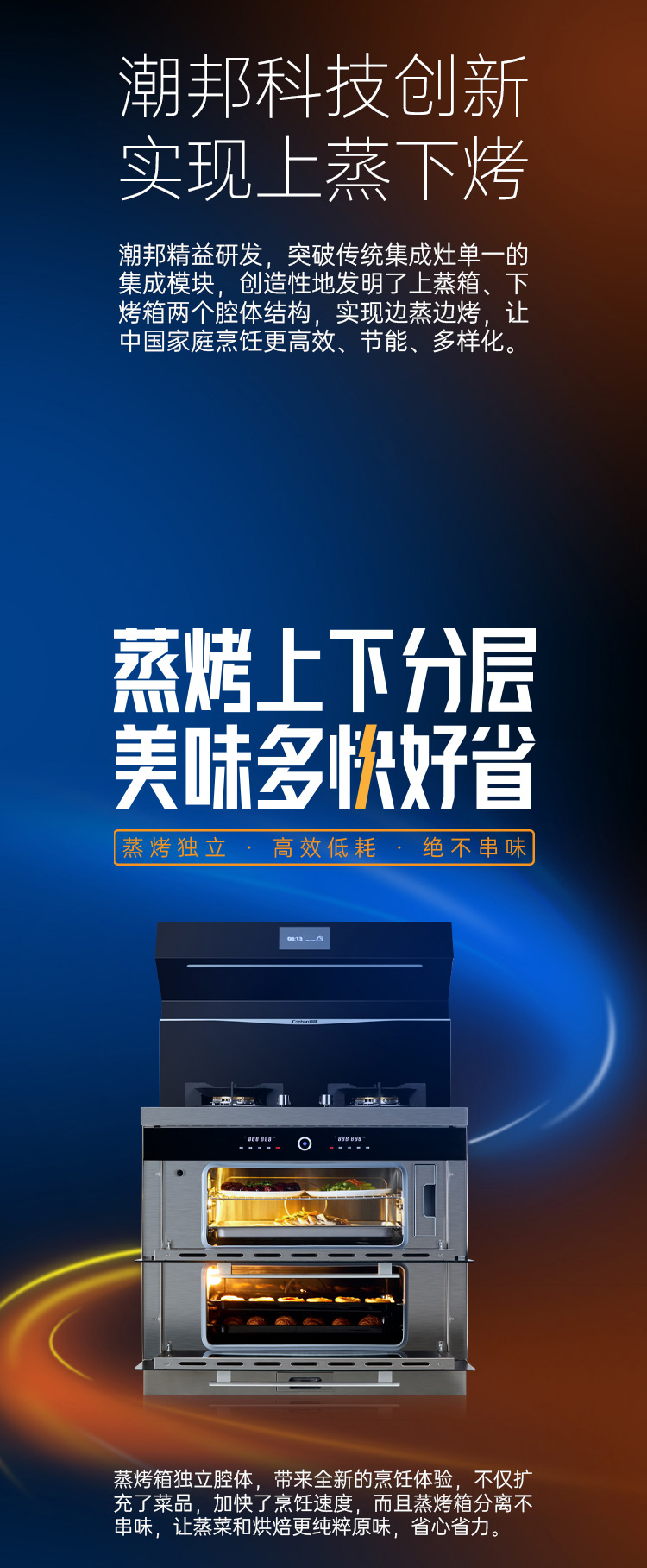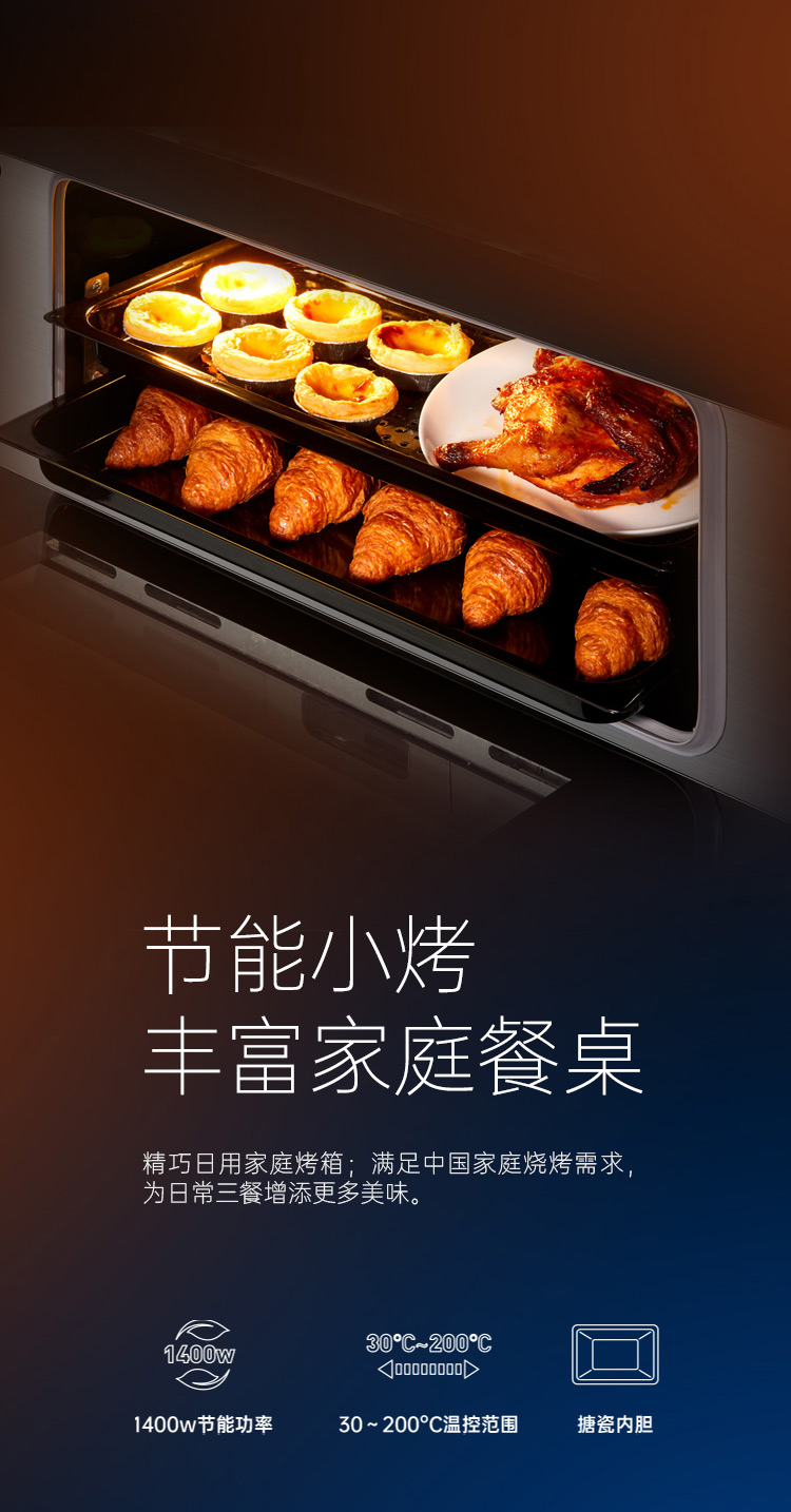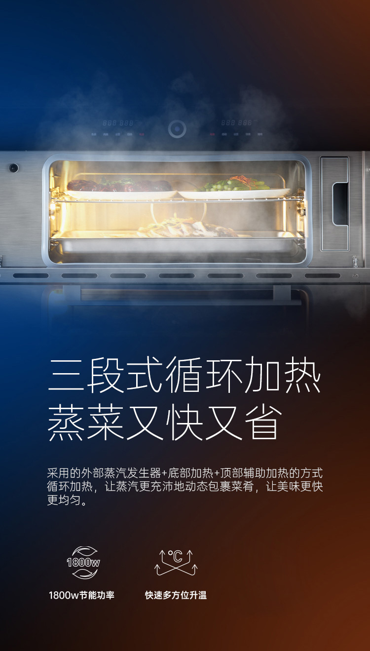 上蒸箱、下烤箱,實現邊蒸邊烤。更高效,更節能。