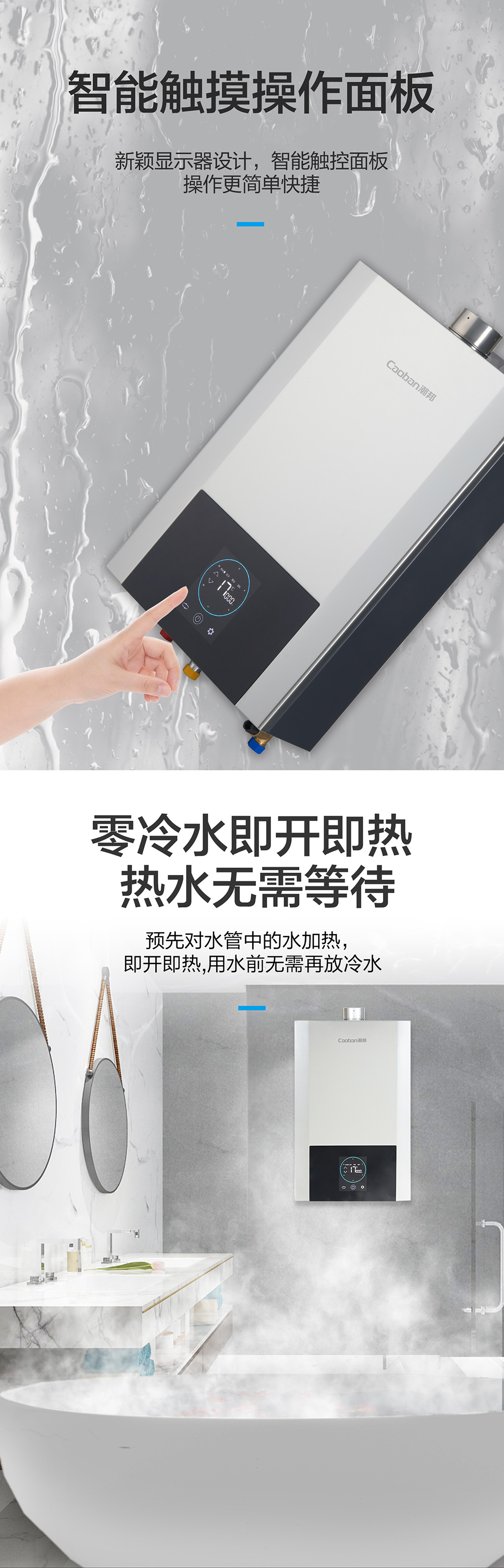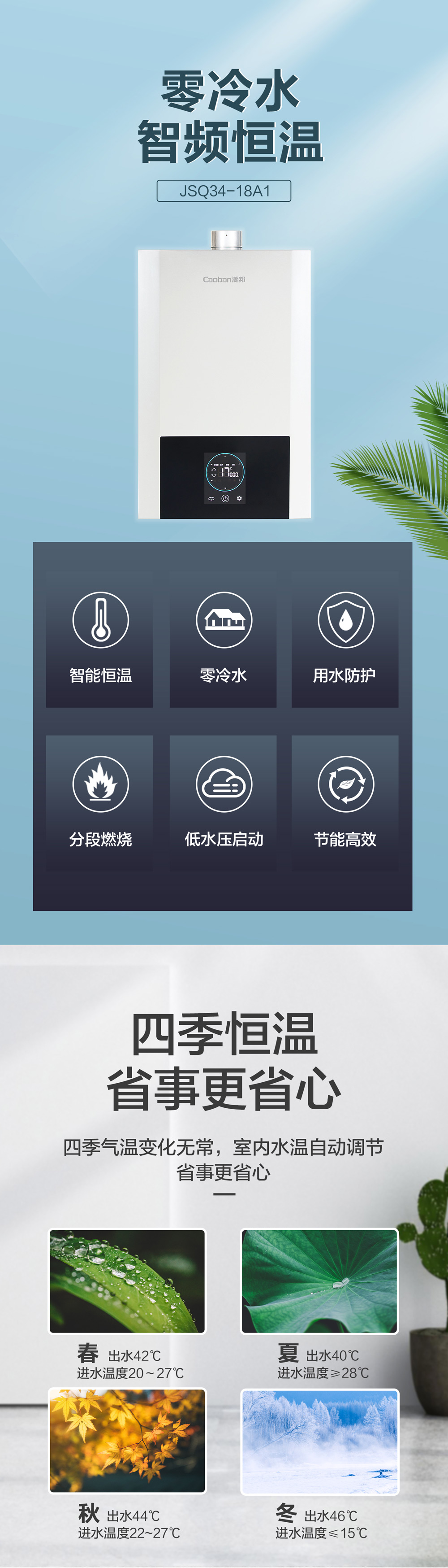 零冷水,智能恒溫,低水壓啟動。